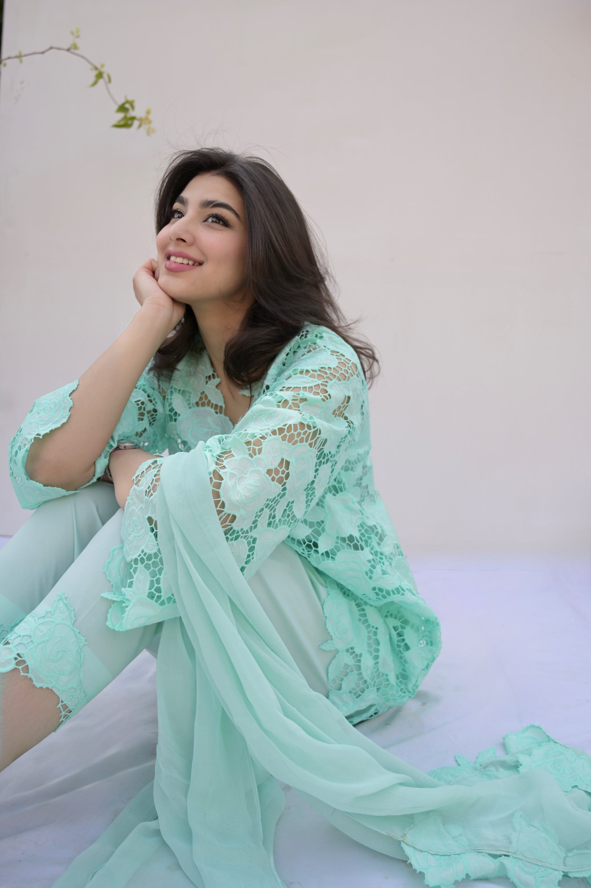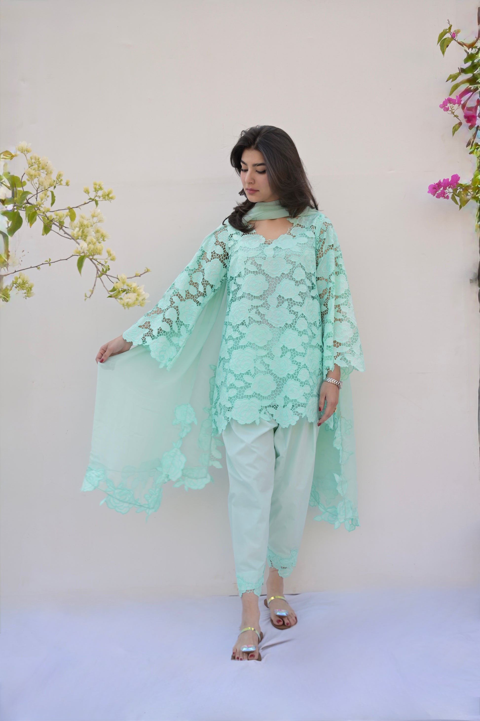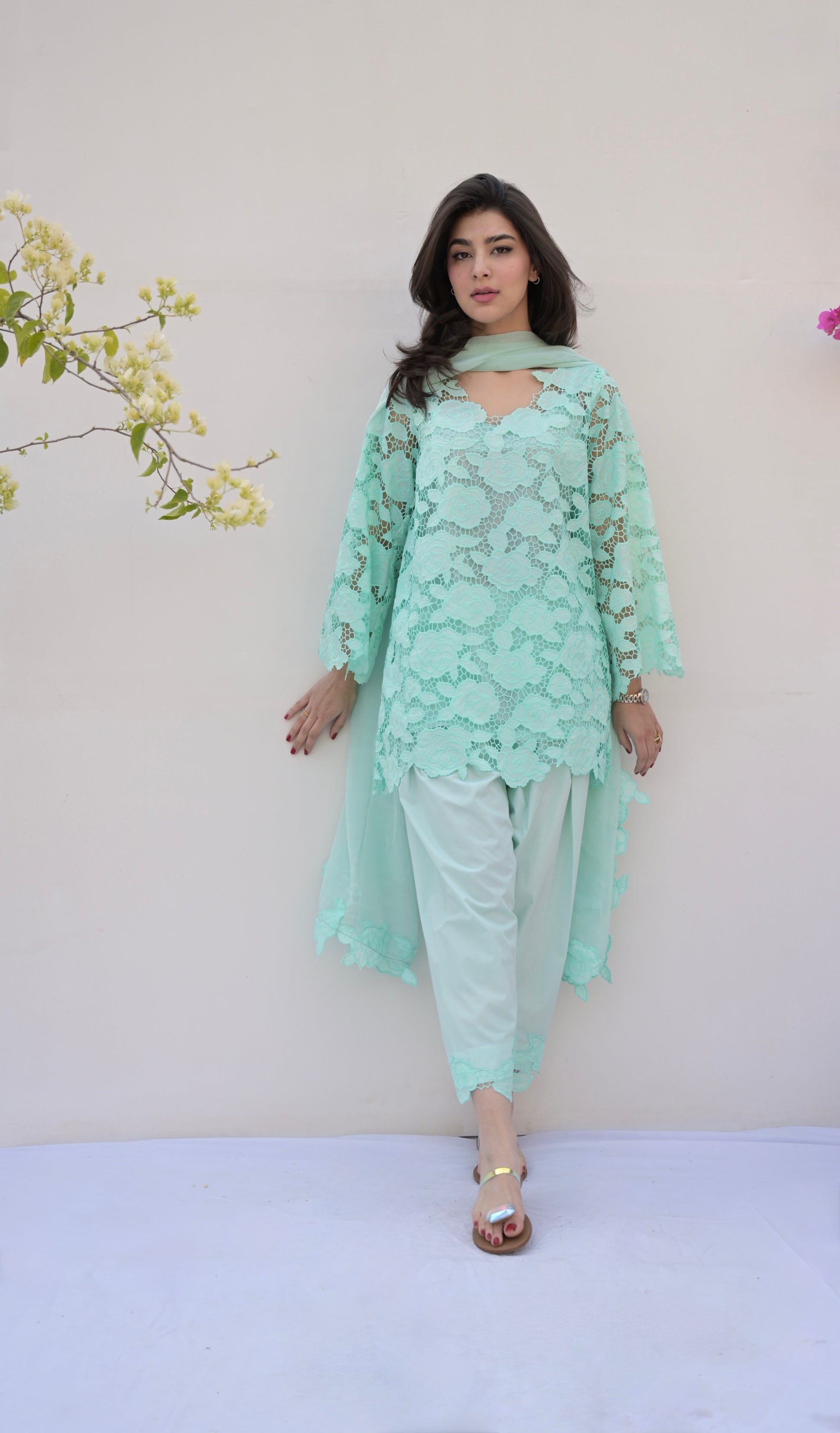 Cotton Lace shirt - cut work daaman and neck line.