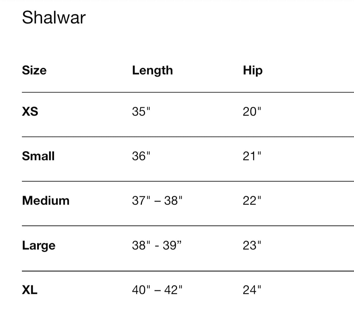 What are your sizing options?